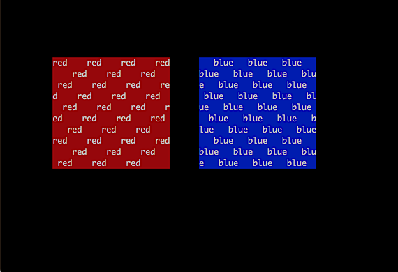 #include <ncurses.h> int main() { WINDOW *red,*blue; int x; initscr(); refresh(); /* colors */ start_color(); init_pair(1,COLOR_WHITE,COLOR_RED); init_pair(2,COLOR_WHITE,COLOR_BLUE); /* create windows */ red = newwin(10,24,5,10); blue = newwin(10,24,5,40); if( red==NULL || blue==NULL) { endwin(); puts("Unable to create windows"); return 1; } /* color and fill windows */ wbkgd(red,COLOR_PAIR(1)); wbkgd(blue,COLOR_PAIR(2)); for(x=0;x<34;x++) { waddstr(red,"red "); waddstr(blue," blue"); } wrefresh(red); wrefresh(blue); getch(); /* copy window */ copywin(red,blue,0,0,1,4,5,10,FALSE); wrefresh(blue); getch(); endwin(); return 0; }