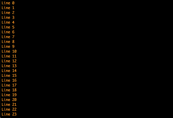 #include <ncurses.h> int main() { int y; initscr(); scrollok(stdscr,TRUE); for(y=0;y<=LINES;y++) mvprintw(y,0,"Line %d",y); refresh(); getch(); scrl(3); refresh(); getch(); endwin(); return 0; }