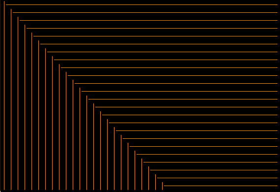 #include <ncurses.h> int main() { int y,x,maxy,maxx; initscr(); getmaxyx(stdscr,maxy,maxx); for(y=x=0;y<maxy;y++,x+=2) { move(y,x); hline(0,maxx-x); vline(0,maxy-y); } refresh(); getch(); endwin(); return(0); }