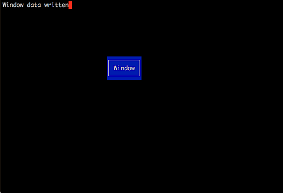 #include <ncurses.h> int main() { FILE *wfile; WINDOW *win; int r; initscr(); start_color(); init_pair(1,COLOR_WHITE,COLOR_BLUE); refresh(); /* Crete and show window */ win = newwin(3,10,7,30); wbkgd(win,COLOR_PAIR(1)); box(win,0,0); mvwaddstr(win,1,2,"Window"); wrefresh(win); getch(); /* open file */ wfile = fopen("window.win","w"); if( wfile==NULL ) { endwin(); puts("File creation error"); return(1); } /* write window data */ r = putwin(win,wfile); fclose(wfile); addstr("Window data written"); refresh(); getch(); endwin(); return(0); }